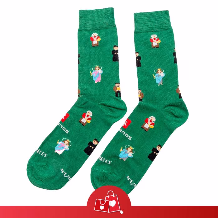 Calcetines con diseños originales de María Auxiliadora, San Don Bosco y Santo Domingo Savio. Ideales para los días fríos de invierno. Materiales: algodón 100%. Talla 31/35. Para consultar sobre otras tallas puede llamarnos al 914 313 313. (Ref. 04005)